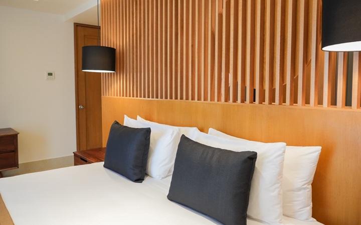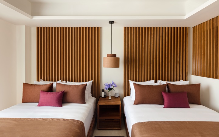 Relax in the stylish studio available with one king bed or two queen beds, featuring warm, natural textures and a bright, open layout. Each room includes a modern ensuite bathroom and carefully curated details to make your stay comfortable, effortless, and inspired.